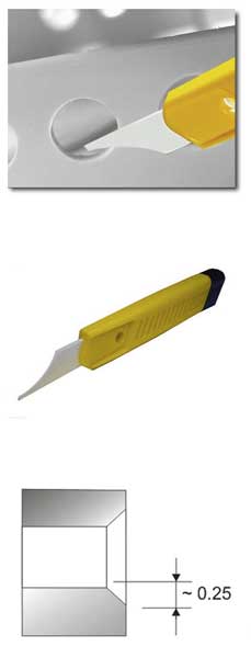 Hand deburrer with ceramic blade. To defuse the sharp edges resulting from the mechanical processing of plastics.