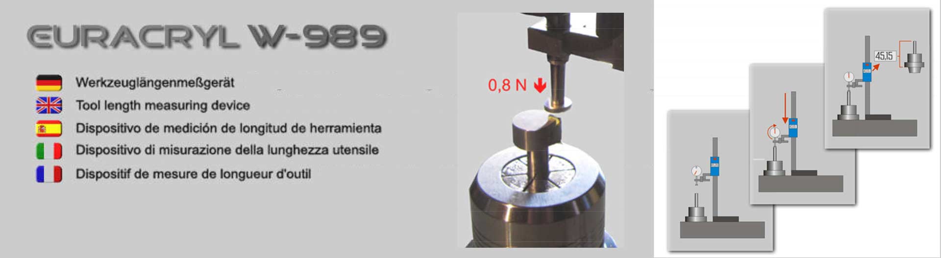 Tool length measuring device for normal and sensitive tool cutting edges. Suitable for tools with monocrystalline diamond cutting edge.
