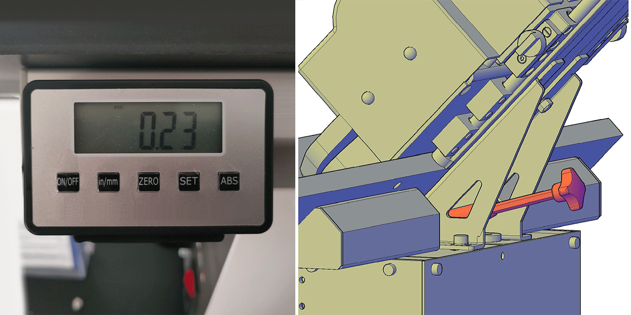 The prismatic guide with no gap between them prevents workpieces from slipping into the tool and enables sharp machining of plates (post gluing).